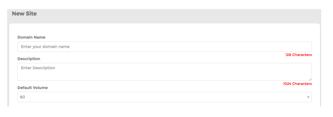 Through the button + Site we can enter the data of the new domain that will be added to the account.