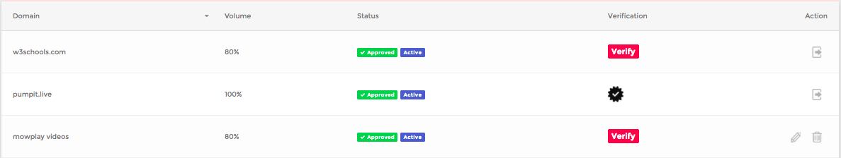 If you have more than one domain you can also add them to your Mow account. Inside Site area, all the websites under your profile will be listed with their current status (Approved - Rejected - Verified).